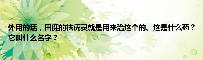 您好,今天帅帅来为大家解答以上的问题。外用的话,田健的祛疣灵就是用来治这个的。这是什么药?它叫什么名字?相信很多小伙伴还不知道,现在让我们一起来看看吧!