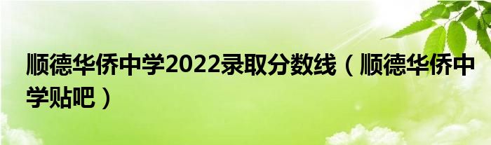 顺德华侨中学2022录取分数线(顺德华侨中学贴吧),有没有大佬愿意指导一下?求帮忙!
