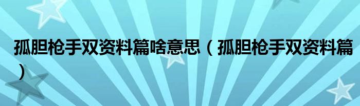 孤胆枪手双资料篇啥意思(孤胆枪手双资料篇),时间不够了,求直接说重点!