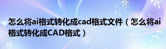 怎么将ai格式转化成cad格式文件(怎么将ai格式转化成CAD格式),求快速帮忙,马上要交了!