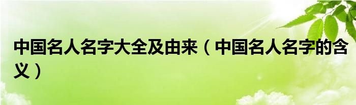 中国名人名字大全及由来(中国名人名字的含义),有没有大佬愿意点拨一下?求帮忙!