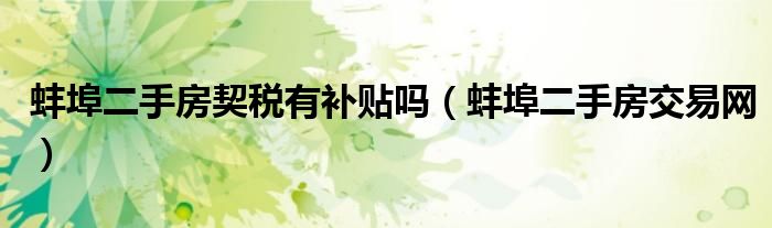 蚌埠二手房契税有补贴吗(蚌埠二手房交易网),快急死了,求给个正确答案!