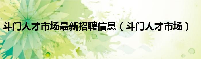 斗门人才市场最新招聘信息(斗门人才市场),急!求解答,求不敷衍我!