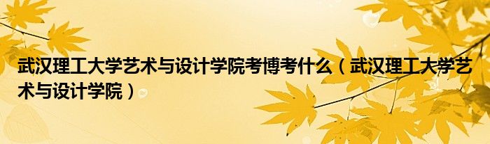 您好,今天帅帅来为大家解答以上的问题。武汉理工大学艺术与设计学院考博考什么,武汉理工大学艺术与设计学院相信很多小伙伴还不知道,现在让我们一起来看看吧!