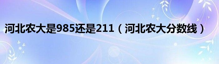 您好,今天帅帅来为大家解答以上的问题。河北农大是985还是211,河北农大分数线相信很多小伙伴还不知道,现在让我们一起来看看吧!
