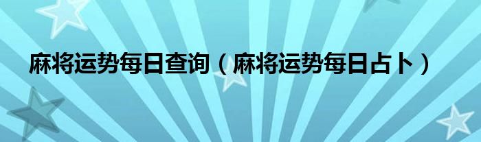 麻将运势每日查询(麻将运势每日占卜),这个问题折磨我三天了,求帮忙!