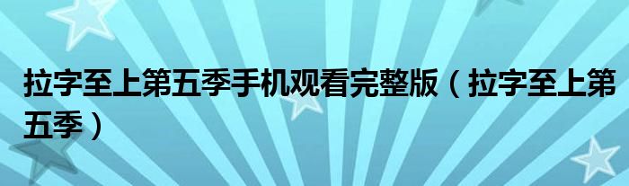 拉字至上第五季手机观看完整版(拉字至上第五季),有没有大佬愿意带带我?求帮忙!