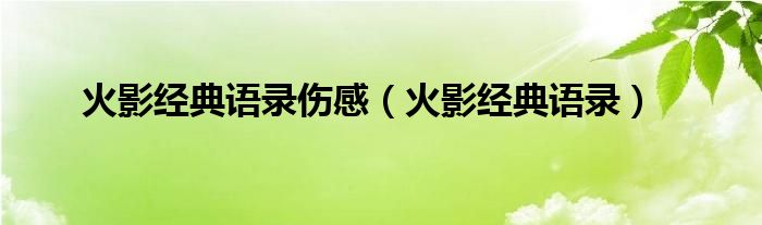 您好,今天帅帅来为大家解答以上的问题。火影经典语录伤感,火影经典语录相信很多小伙伴还不知道,现在让我们一起来看看吧!