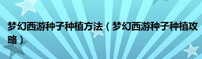 梦幻西游种子种植方法(梦幻西游种子种植攻略),急!求解答,求别忽视我的问题!