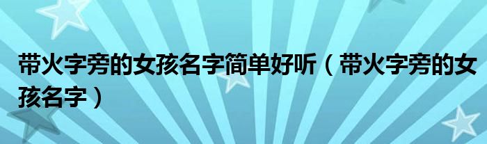 带火字旁的女孩名字简单好听(带火字旁的女孩名字),求快速回复,真的等不了了!