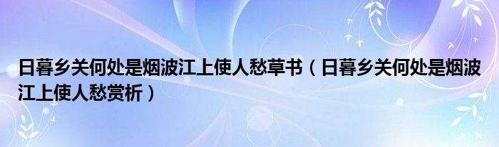 您好,今天帅帅来为大家解答以上的问题。日暮乡关何处是烟波江上使人愁草书,日暮乡关何处是烟波江上使人愁赏析相信很多小伙伴还不知道,现在让我们一起来看看吧!