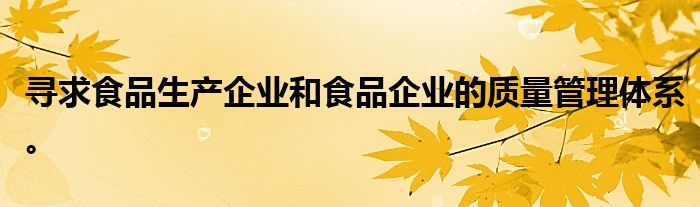 您好,今天帅帅来为大家解答以上的问题。寻求食品生产企业和食品企业的质量管理体系。相信很多小伙伴还不知道,现在让我们一起来看看吧!