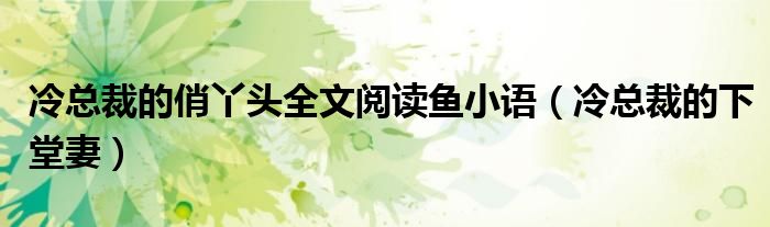 冷总裁的俏丫头全文阅读鱼小语(冷总裁的下堂妻),快急死了,求给个正确答案!