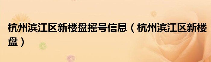 杭州滨江区新楼盘摇号信息(杭州滨江区新楼盘),真的急死了,求好心人回复!