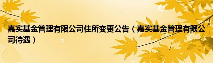 您好,今天帅帅来为大家解答以上的问题。嘉实基金管理有限公司住所变更公告,嘉实基金管理有限公司待遇相信很多小伙伴还不知道,现在让我们一起来看看吧!
