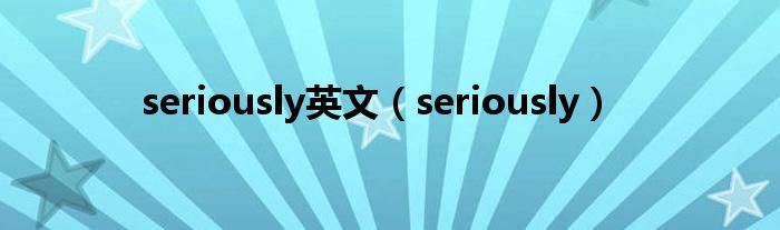 您好,今天帅帅来为大家解答以上的问题。seriously英文,seriously相信很多小伙伴还不知道,现在让我们一起来看看吧!
