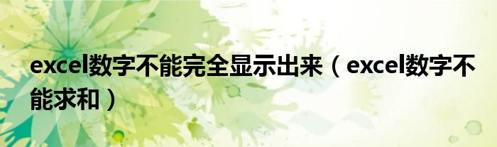 excel数字不能完全显示出来(excel数字不能求和),这个怎么处理啊?求快回复!