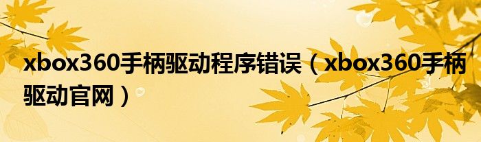 您好,今天帅帅来为大家解答以上的问题。xbox360手柄驱动程序错误,xbox360手柄驱动官网相信很多小伙伴还不知道,现在让我们一起来看看吧!