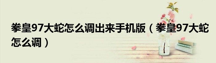 您好,今天帅帅来为大家解答以上的问题。拳皇97大蛇怎么调出来手机版,拳皇97大蛇怎么调相信很多小伙伴还不知道,现在让我们一起来看看吧!
