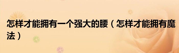怎样才能拥有一个强大的腰(怎样才能拥有魔法),快急疯了,求给个思路吧!