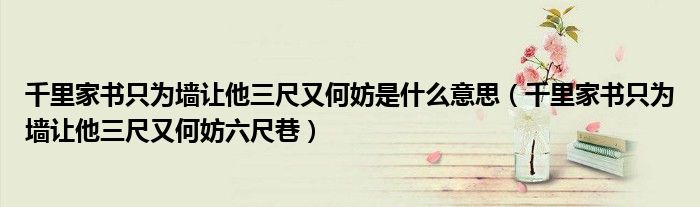 千里家书只为墙让他三尺又何妨是什么意思(千里家书只为墙让他三尺又何妨六尺巷),有没有人理理我呀?急死啦!