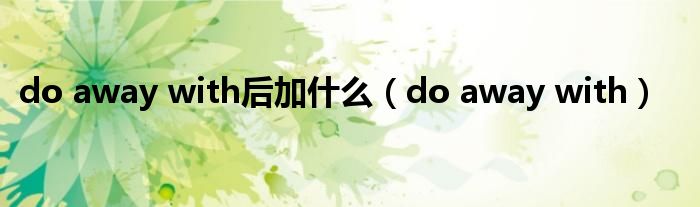 您好,今天帅帅来为大家解答以上的问题。do away with后加什么,do away with相信很多小伙伴还不知道,现在让我们一起来看看吧!