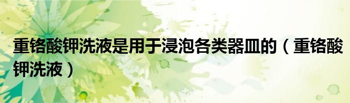 您好,今天帅帅来为大家解答以上的问题。重铬酸钾洗液是用于浸泡各类器皿的,重铬酸钾洗液相信很多小伙伴还不知道,现在让我们一起来看看吧!