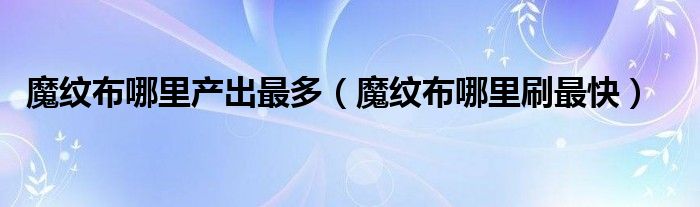 魔纹布哪里产出最多(魔纹布哪里刷最快),求解答求解答,求帮忙!