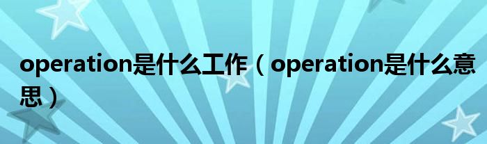 您好,今天帅帅来为大家解答以上的问题。operation是什么工作,operation是什么意思相信很多小伙伴还不知道,现在让我们一起来看看吧!