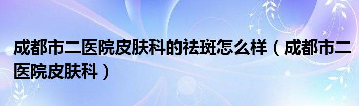 成都市二医院皮肤科的祛斑怎么样(成都市二医院皮肤科),这个问题折磨我三天了,求帮忙!