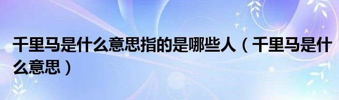 您好,今天帅帅来为大家解答以上的问题。千里马是什么意思指的是哪些人,千里马是什么意思相信很多小伙伴还不知道,现在让我们一起来看看吧!