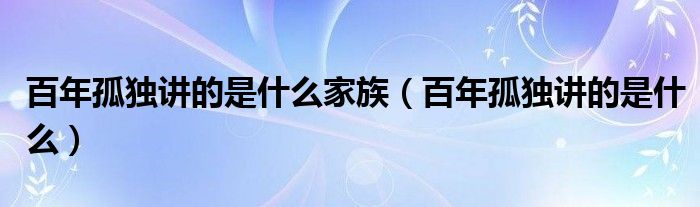 百年孤独讲的是什么家族(百年孤独讲的是什么),急!求解答,求不鸽我!