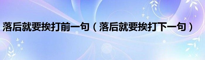 您好,今天帅帅来为大家解答以上的问题。落后就要挨打前一句,落后就要挨打下一句相信很多小伙伴还不知道,现在让我们一起来看看吧!