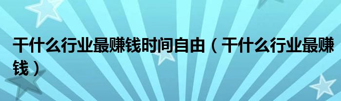 您好,今天帅帅来为大家解答以上的问题。干什么行业最赚钱时间自由,干什么行业最赚钱相信很多小伙伴还不知道,现在让我们一起来看看吧!