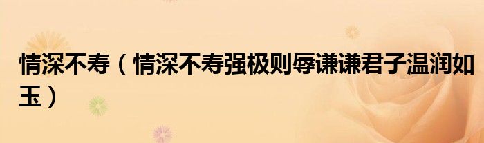 您好,今天帅帅来为大家解答以上的问题。情深不寿,情深不寿强极则辱谦谦君子温润如玉相信很多小伙伴还不知道,现在让我们一起来看看吧!