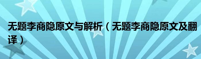 您好,今天帅帅来为大家解答以上的问题。无题李商隐原文与解析,无题李商隐原文及翻译相信很多小伙伴还不知道,现在让我们一起来看看吧!