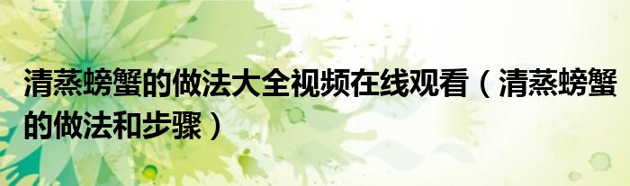 您好,今天帅帅来为大家解答以上的问题。清蒸螃蟹的做法大全视频在线观看,清蒸螃蟹的做法和步骤相信很多小伙伴还不知道,现在让我们一起来看看吧!