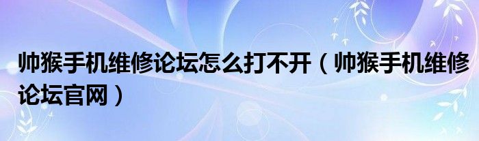 帅猴手机维修论坛怎么打不开(帅猴手机维修论坛官网),求路过的大神指点,急!