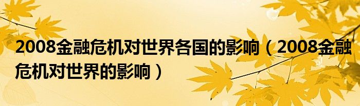 您好,今天帅帅来为大家解答以上的问题。2008金融危机对世界各国的影响,2008金融危机对世界的影响相信很多小伙伴还不知道,现在让我们一起来看看吧!