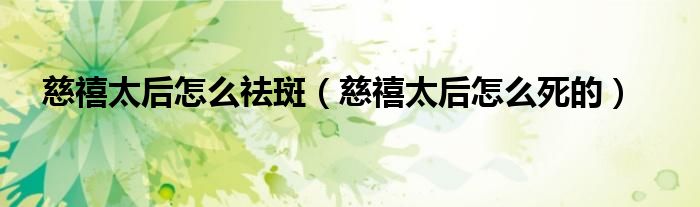 您好,今天帅帅来为大家解答以上的问题。慈禧太后怎么祛斑,慈禧太后怎么死的相信很多小伙伴还不知道,现在让我们一起来看看吧!