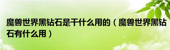 魔兽世界黑钻石是干什么用的(魔兽世界黑钻石有什么用),求大佬赐我一个答案,感谢!