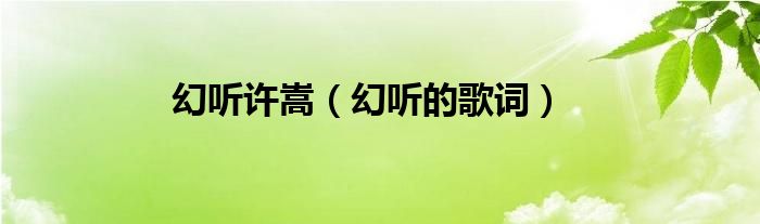 您好,今天帅帅来为大家解答以上的问题。幻听许嵩,幻听的歌词相信很多小伙伴还不知道,现在让我们一起来看看吧!