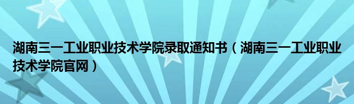 湖南三一工业职业技术学院录取通知书(湖南三一工业职业技术学院官网),时间来不及了,求直接说重点!