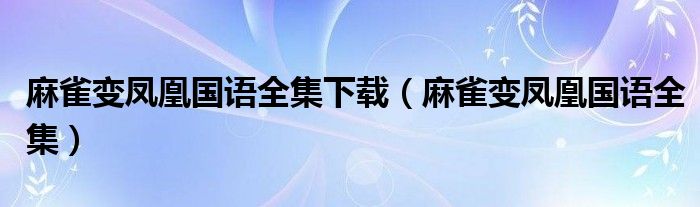 您好,今天帅帅来为大家解答以上的问题。麻雀变凤凰国语全集下载,麻雀变凤凰国语全集相信很多小伙伴还不知道,现在让我们一起来看看吧!