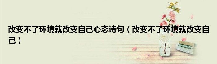 您好,今天帅帅来为大家解答以上的问题。改变不了环境就改变自己心态诗句,改变不了环境就改变自己相信很多小伙伴还不知道,现在让我们一起来看看吧!