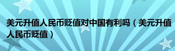 您好,今天帅帅来为大家解答以上的问题。美元升值人民币贬值对中国有利吗,美元升值人民币贬值相信很多小伙伴还不知道,现在让我们一起来看看吧!