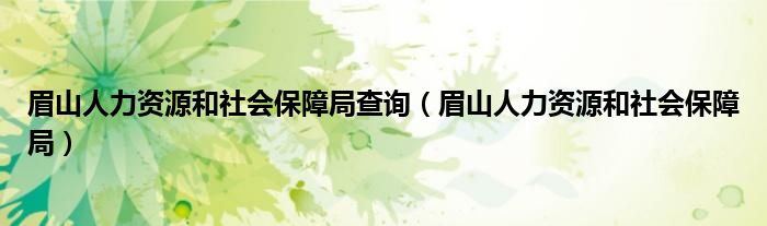 眉山人力资源和社会保障局查询(眉山人力资源和社会保障局),在线等,很急,求回复!