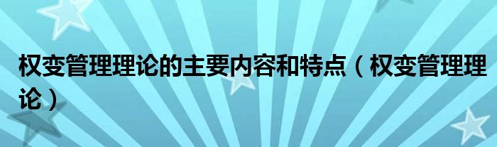 您好,今天帅帅来为大家解答以上的问题。权变管理理论的主要内容和特点,权变管理理论相信很多小伙伴还不知道,现在让我们一起来看看吧!
