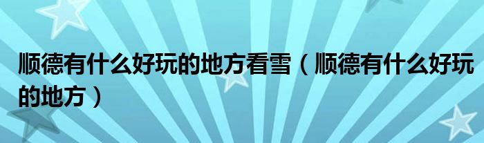 顺德有什么好玩的地方看雪(顺德有什么好玩的地方),真的撑不住了,求给个答案吧!