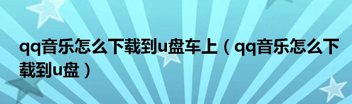 您好,今天帅帅来为大家解答以上的问题。qq音乐怎么下载到u盘车上,qq音乐怎么下载到u盘相信很多小伙伴还不知道,现在让我们一起来看看吧!